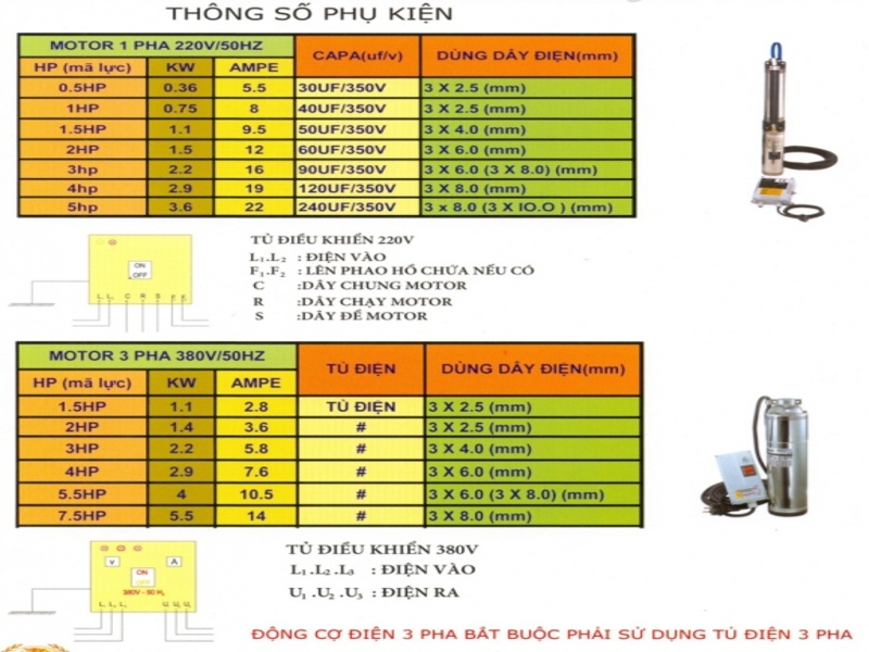 • Công suất bạn cần máy bơm là bao nhiêu.