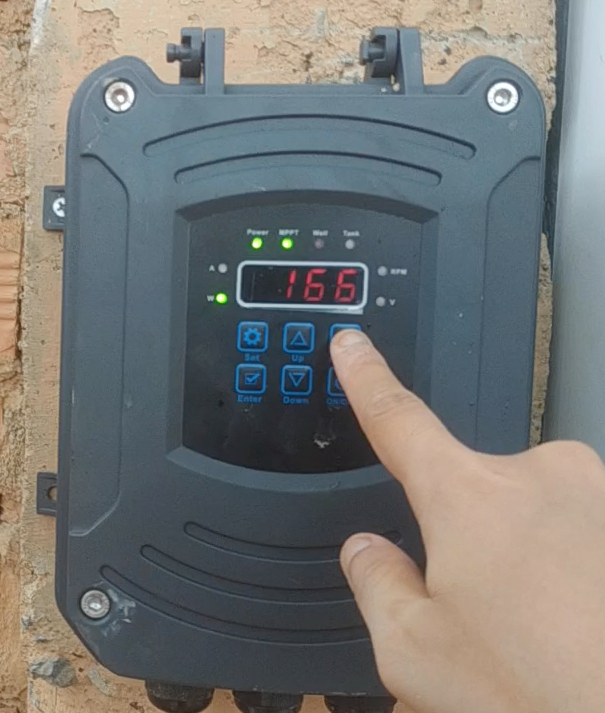 Máy bơm sử dụng trong hệ thống này là bơm chuyên dụng được sản xuất để chạy với điện mặt trời, do đó bơm được thiết kế chạy điện DC để có thể chạy trực tiếp với tấm pin quang năng.