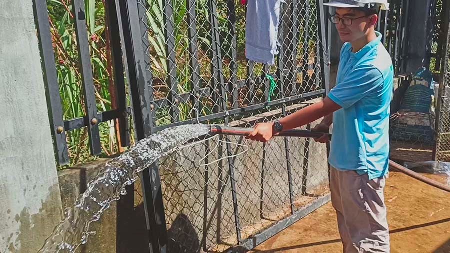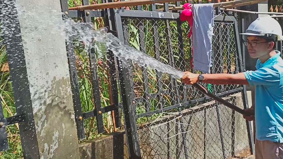 Bơm được đưa đi vận hành hút lên bể chứa và bơm tưới tay