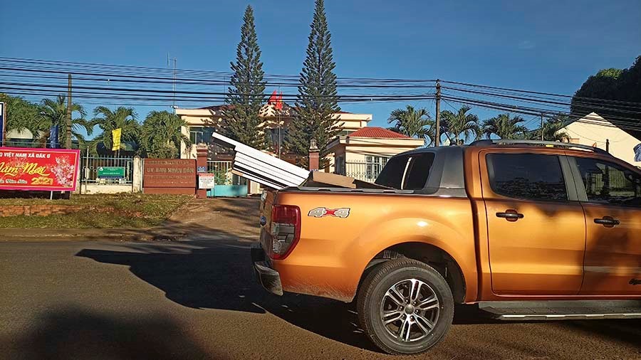 Xe chở hệ bơm có mặt tại UBND Xã Đăk Ơ