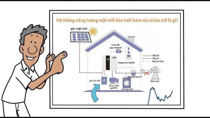 Về cơ bản, hệ thống này hoạt động bằng cách ưu tiên sử dụng điện từ các pin năng lượng mặt trời để cấp cho tải tiêu thụ trong nhà, và chỉ lấy thêm điện từ lưới khi cần thiết.