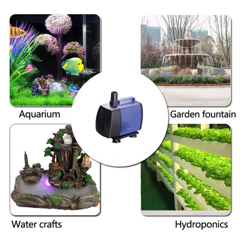 Dùng bơm nước bể cá, bơm nước thủy canh, bơm hoàn non bộ, bơm hệ thống rau và cá, bơm tưới hoa rau sân vườn, dùng trong hệ thống tưới cấp nước,…….