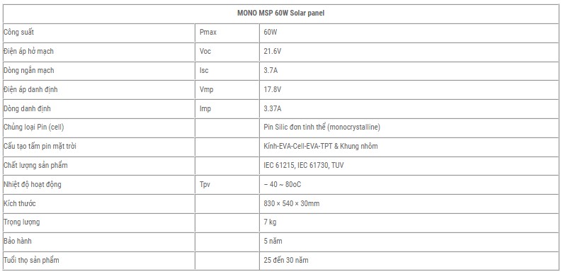 Đối với dòng sản phẩm công suất nhỏ, chúng tôi giới thiệu đến loại tấm pin mini loại Mono 60W, sản phẩm này được xem là giải pháp tối ưu hấp thụ ánh sáng mặt trời tự nhiên, tạo ra nguồn năng lượng xanh cực kì tiện lợi và giúp tiết kiệm đáng kể cho kinh tế gia đình. Những bảng này tương đối nhỏ gọn và dễ dàng để thiết lập, Ứng dụng rộng rãi cho đèn năng lượng mặt trời, đi cắm trại trên núi hoặc tham gia một chuyến đi đến bãi biển, tấm pin mini này có thể là lựa chọn để mang theo tiện ích. Với MONO 60W 12V này cuộc sống của bạn trở nên tiện nghi và hiện đại hơn bao giờ hết.