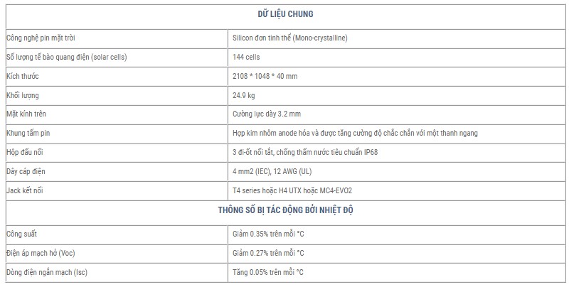 - Công nghệ Half-cut- cell sẽ giúp số lượng cell pin tăng lên gấp đôi trong cùng diện tích sử dụng là 144 thay vì 72 như bình thường và hoạt động hoàn toàn độc lập với nhau giúp tấm pin trở nên mát hơn trong quá trình hoạt động tạo được sự bền bỉ khi sử dụng trong thời gian dài.