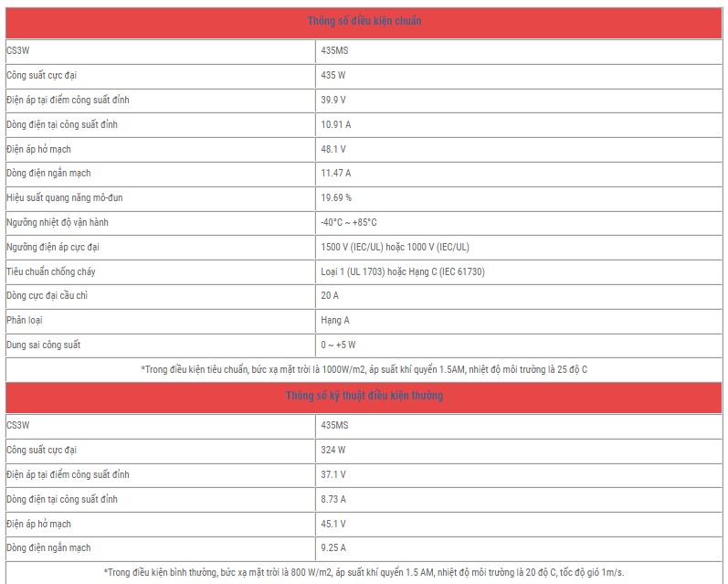 Tấm pin mặt trời Canadian Mono CS3W-435MS (435W)